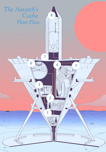 Once a year, the azure dunes of Vaarn’s interior part way to expose a hidden structure. Appearing to be an inverted pyramid held aloft by a scaffold of marble, the Autarch’s cache is a trinket collector's dream.